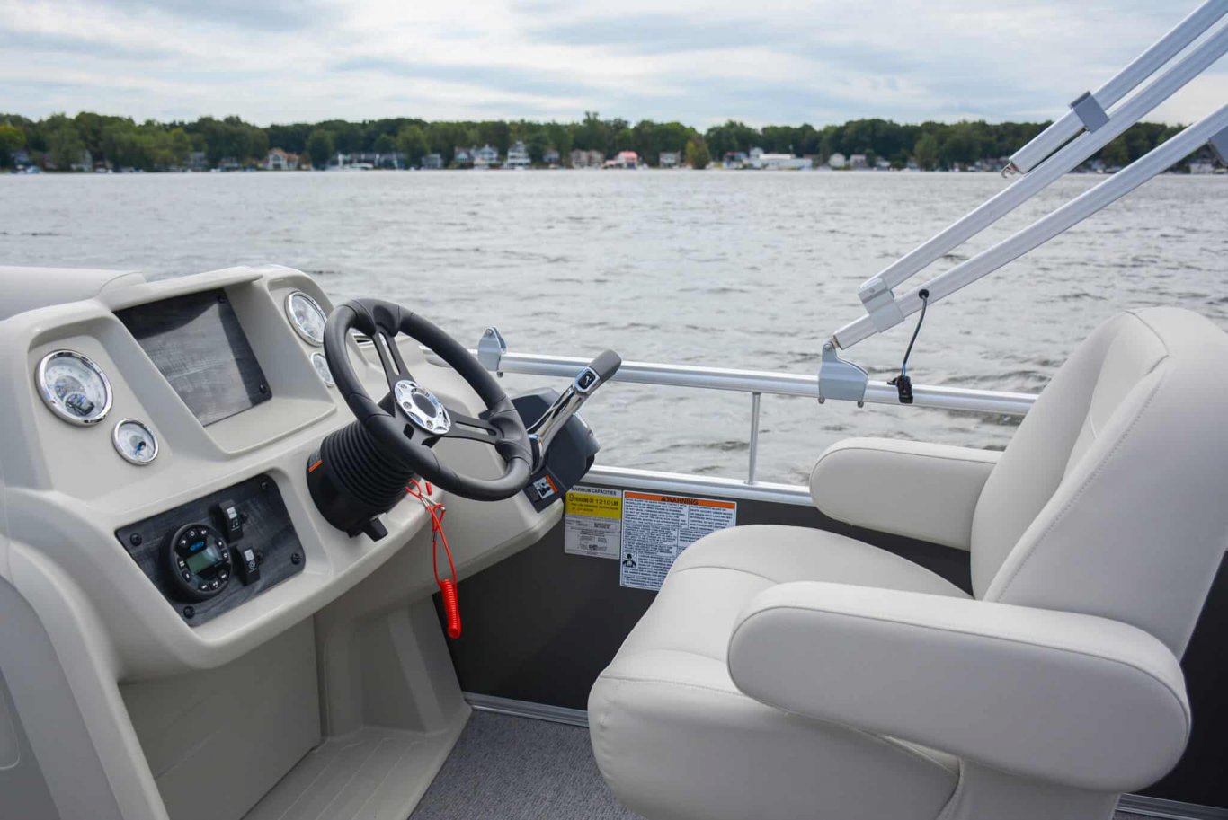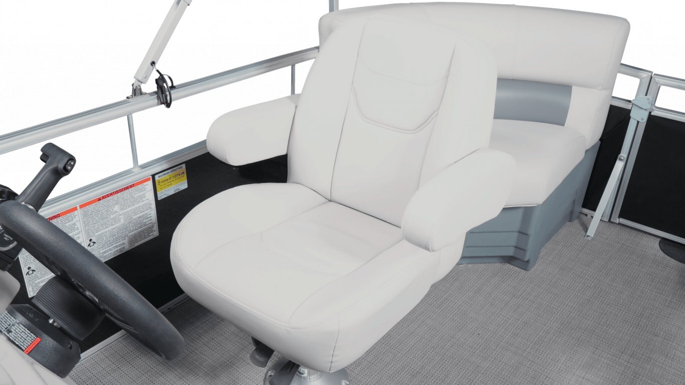 Legend Boats Fun Series 20 Ergonomic captain's chair with arm and back supports.