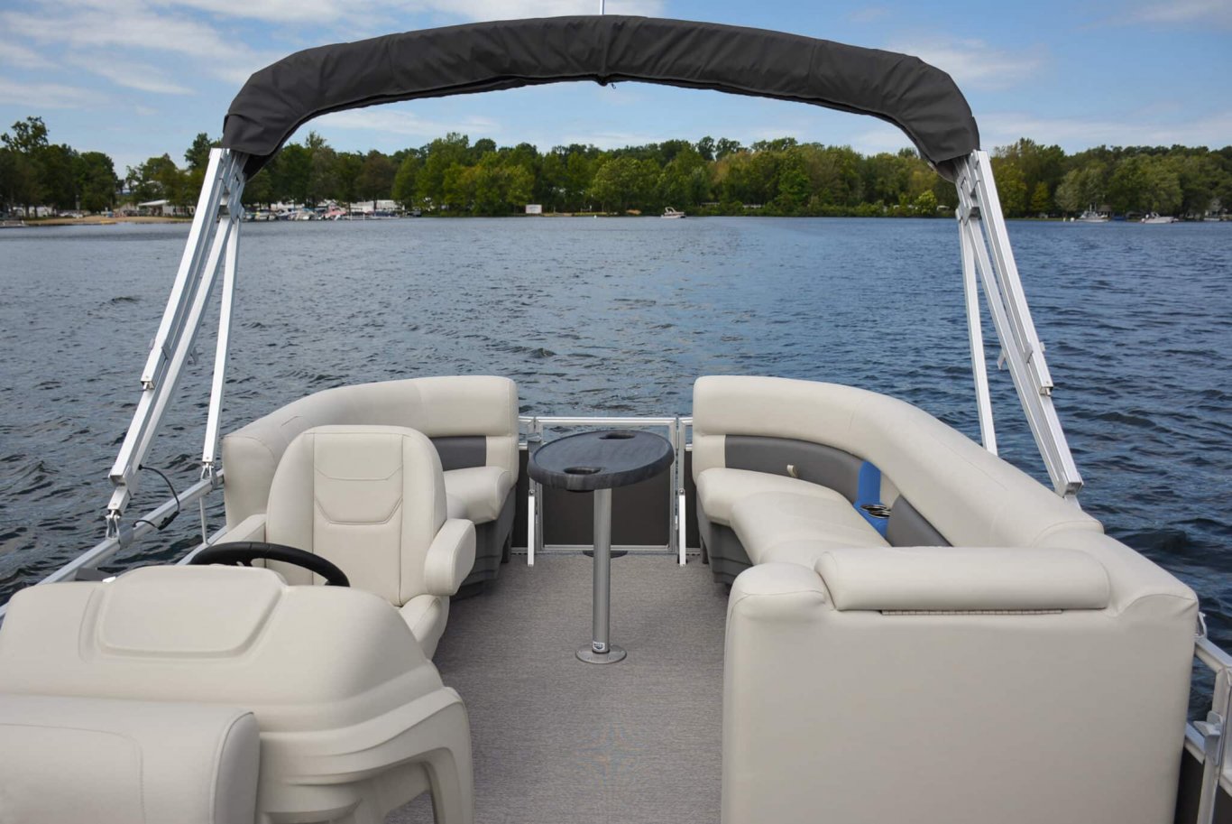 Legend Boats Fun Series 20 Forward lounge with dinette table.