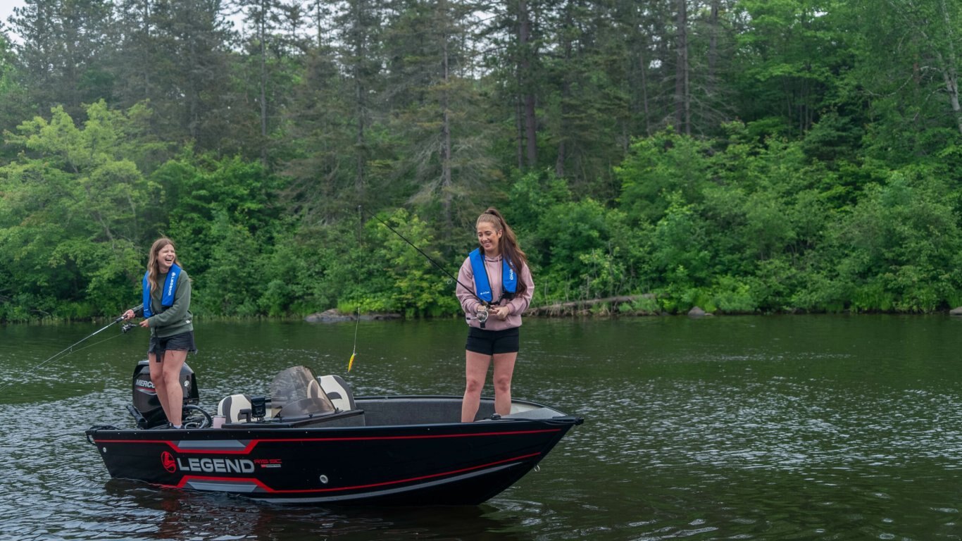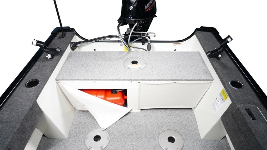 Construction .100 gauge riveted seamless hull bottom Internal lateral support ribs spaced 9" apart Lap-straked sidewalls 3 full-length .100 gauge keels Injected and level foam floatation Rear casting deck Side-facing rivet line with lifetime warranty Full-length molded splash rail Full-length deep-v hull with squared chines Ez-grip gunnel 7 layer, individually treated plywood floor 3M highly reflective safety striping on Legend name