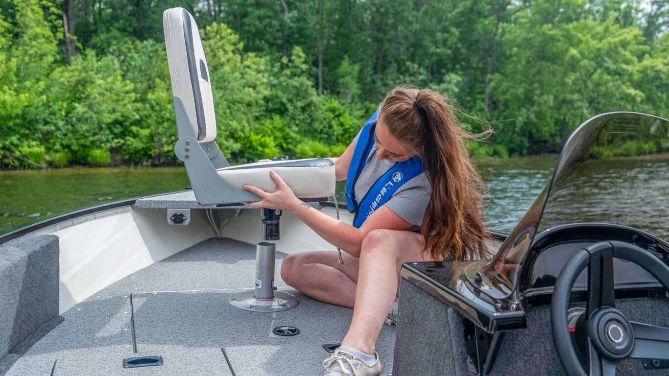 The R15 SC is built tough with .100 gauge aluminum, but is still just the right size to get into any lake you want. It's easy to tow, has plenty of storage, two fishing decks and an easy clean all-vinyl interior.