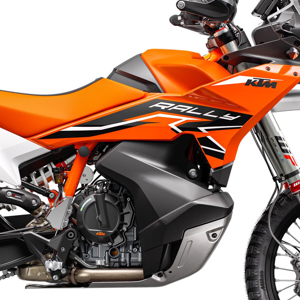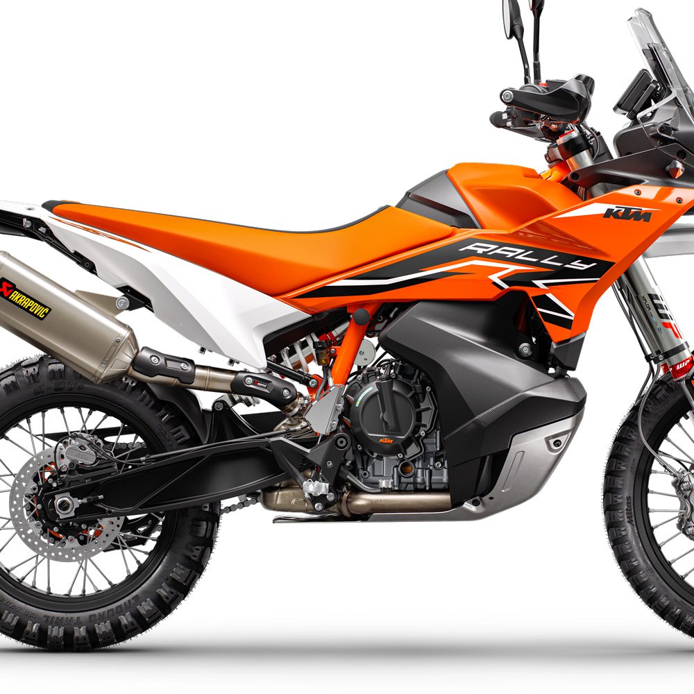 When it comes to getting the power down to the ground and having a solid footing, the 2024 KTM 890 ADVENTURE R RALLY boasts some serious rolling componentry. High-strength 2.15 x 21" and 4.00 x 18" EXCEL rims are specifically designed to handle the most hardcore of offroad terrain with total confidence. Likewise, when it comes to digging in your heels and getting full traction through your boots, the KTM 890 ADVENTURE R RALLY has a wider footprint, offering improved boot grip and rider comfort when charging on the pegs. |