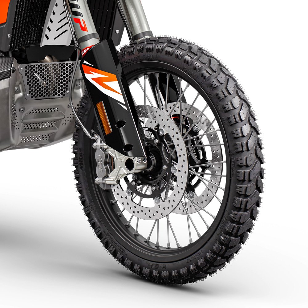The 2024 KTM 890 ADVENTURE R RALLY RALLY is fitted with all-new MITAS ENDURO TRAIL rubber, specifically optimized for KTM. These are ideal for riders looking for durability, handling, and mileage on road, but with the added benefit of being able to conquer difficult offroad tracks and trails with ease. |