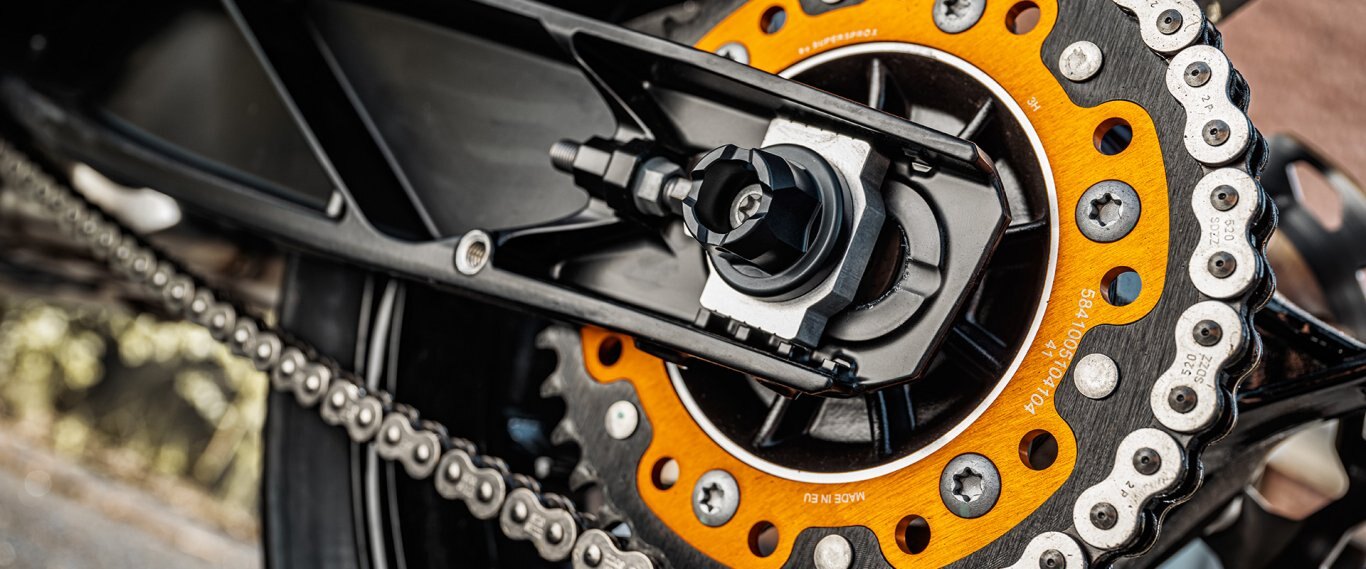 The KTM 790 DUKE is fitted with extremely lightweight, light-alloy wheels manufactured using a low-pressure die-casting process. Not only do the lightweight wheels subtract from the overall weight, but they also minimize the unsprung rotating masses and are wrapped in a set of MAXXIS Supermaxx ST tires. |
