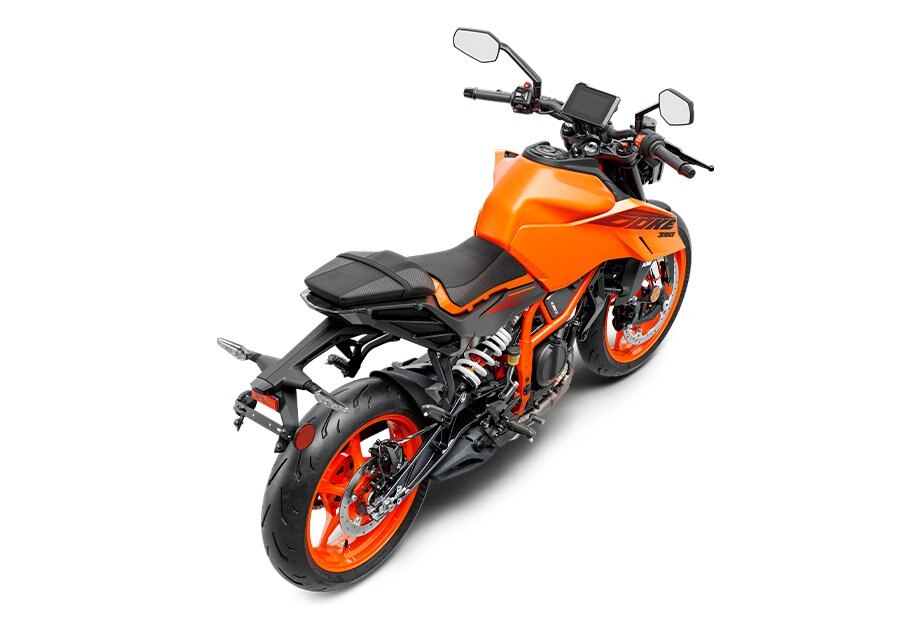 Premium looks come standard on the KTM 390 DUKE. A high-quality, multi-layered, wet-painted finish in either Electronic Orange or Atlantic Blue with clear-gloss graphics perfectly set off the unique DUKE textured seat cover. Make no mistake, this is 100% DUKE with 110% street-cred.