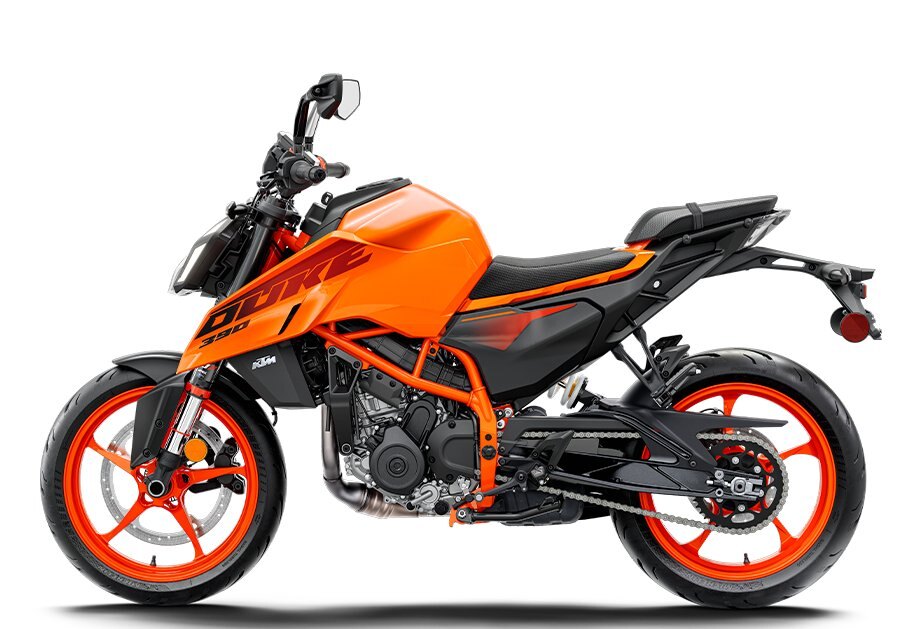 With the KTM 390 DUKE, the world around you becomes your very own gymkhana. Bringing exceptional agility, lightweight handling, and punchy performance to the street, this middle-weight bruiser is ready to take on any twists or turns. Packing state-of-the-art rider aids as well as adjustable suspension - and aggressive looks - the 2025 KTM 390 DUKE wears the crown when it comes to carving up the asphalt.