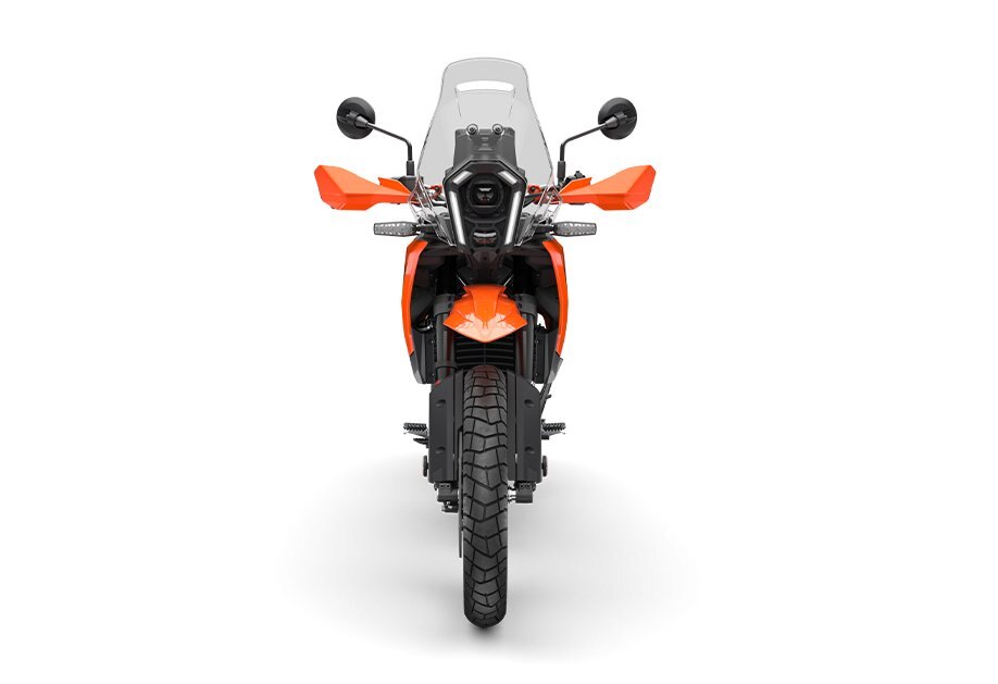 You'll no doubt hit some highways at some stage. Good thing, then, that the KTM 390 ADVENTURE range boasts a sturdy and efficient windshield. Thanks to its slim profile, the rider isn't obstructed when moving around the machine. It also offers an unobstructed view directly in front of the bike - even when covered in dirt.