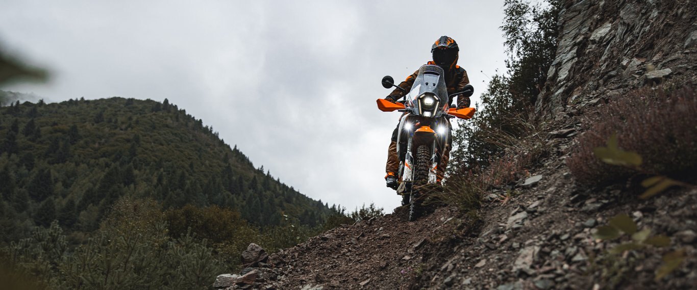 When the road ends and the dirt track begins, KTM 390 ADVENTURE R riders can switch to OFFROAD MODE. This allows a certain rear-wheel slip, meaning muddy puddles or thick sand is easily navigated. In OFFROAD MODE, OFFROAD ABS is also activated, meaning you can pull your best impressions by locking up the rear wheel to slide into corners. OFFROAD MODE also maintains its settings if you stall the engine or switch off your machine, meaning you're ready to go as soon as the engine fires up.