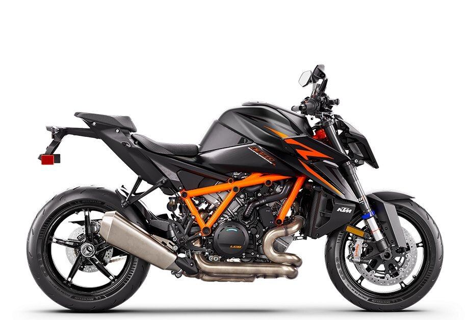 Boasting the latest and fully revised version of the bellowing LC8 V-twin engine, the KTM 1390 SUPER DUKE R EVO is a torque-hungry, epically powerful, and exciting BEAST. Increased displacement and an all-new cam shift technology deliver a near 1:1 power-to-weight ratio, the KTM 1390 SUPER DUKE R EVO turns the planet on its axis rather than riding upon it. |